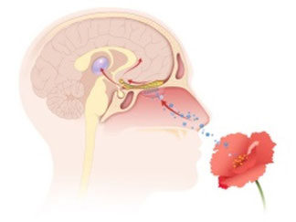 Die Riechschleimhaut befindet sich im oberen Teil der Nase. Duftstoffe, die dort ankommen, lösen sich im Nasenschleim und binden an die Rezeptoren der Riechzellen. Dort werden dadurch elektrische Signale ausgelöst, die über den Riechnerv zum Riechkolben weitergeleitet werden. Verarbeitet werden diese dann in höheren Gehirnareale (Riechrinde, Amygdala - Verknüfung mit Emotionen, Hippokampus - Gedächtnis) weitergeleitet werden.